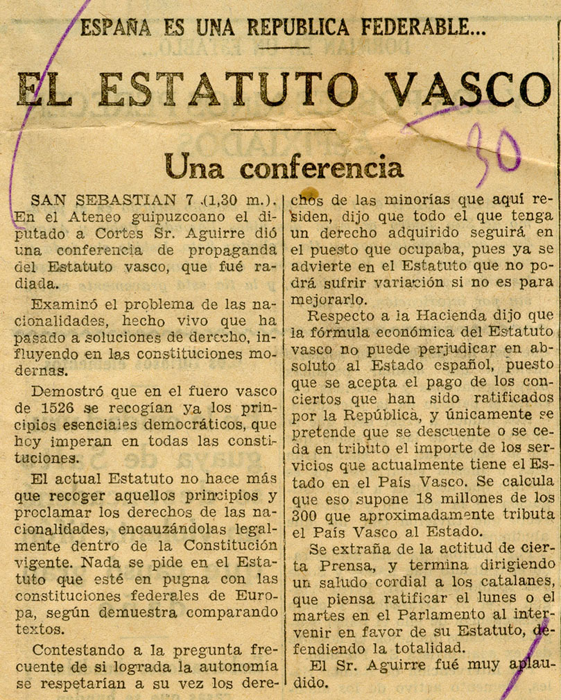 - España es una República federable... El estatuto Vasco. Una conferencia.
