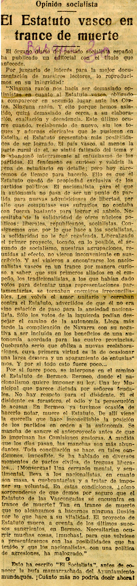- El Estatuto Vasco, en trance de muerte.