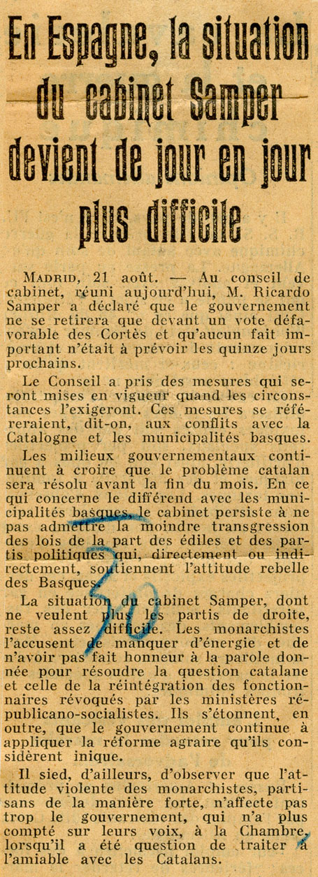 - En Espagne, la situation du cabinet Samper devient de jour en jour plus difficile.