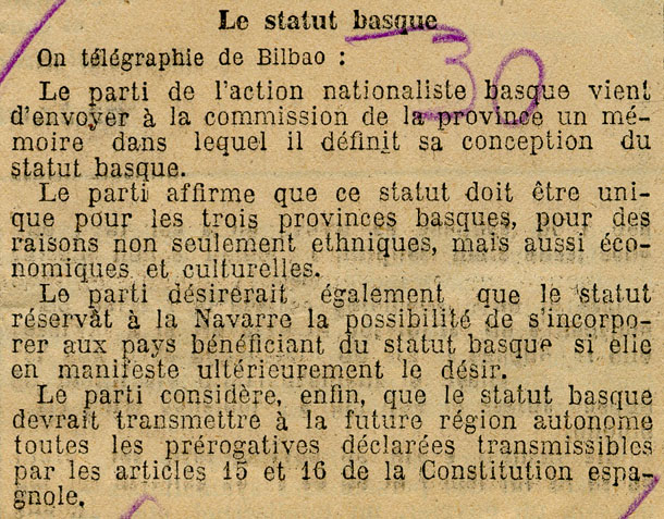 - Recorte de agencia [Argus Suisse et International de la Presse, S.A./23, rue du Rhône-Genève]