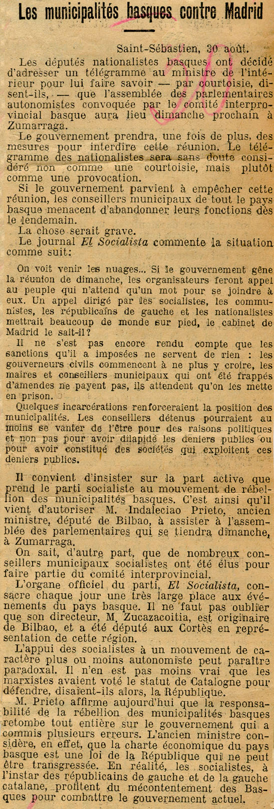 Recorte de agencia [Argus Suisse et International de la Presse, S.A./23, rue du Rhône-Genève]