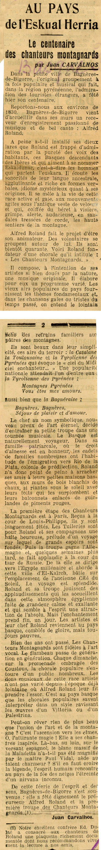 - Le centenaire des chanteurs montagnards.