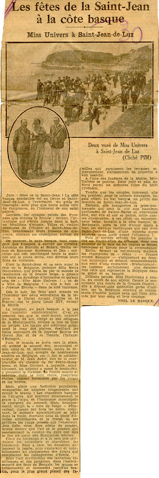 - Les fêtes de la Saint-Jean à la côte basque. Miss Univers à Saint-Jean-de-Luz.