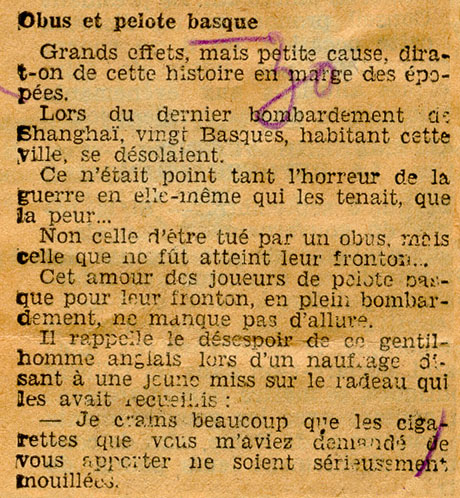 - Anécdota sobre pelotaris en el bombardeo de Shangai.