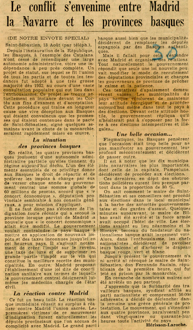 - Le conflit s´envenime entre Madrid, la Navarre et les provinces basques.
