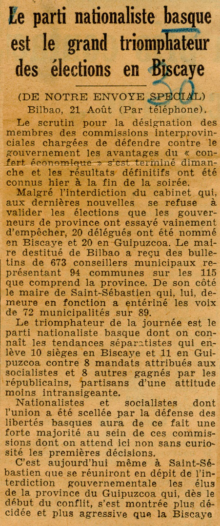 - Le parti nationaliste basque est le gran triomphateur des élections en Biscaye.