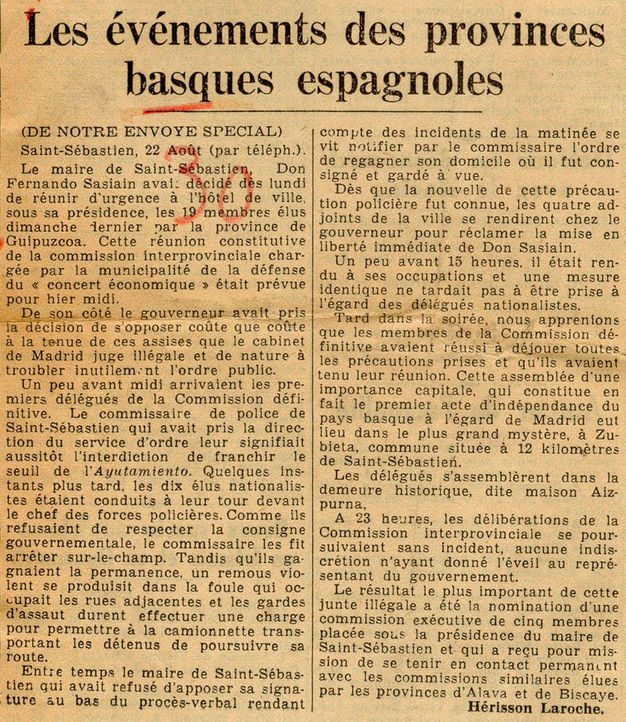 - Les événements des provinces basques espagnoles.