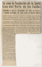 Recorte de prensa de procedencia no precisada que recoge un artículo referente a la creación de la Fundación de la Santa Cruz del Valle de los Caídos.