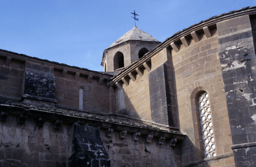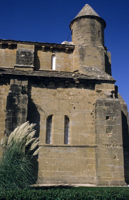 Detalle de la fachada trasera de la iglesia del Monasterio de la Oliva, en Carcastillo (Navarra).