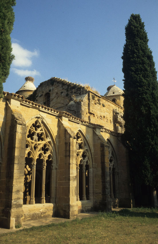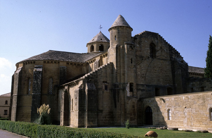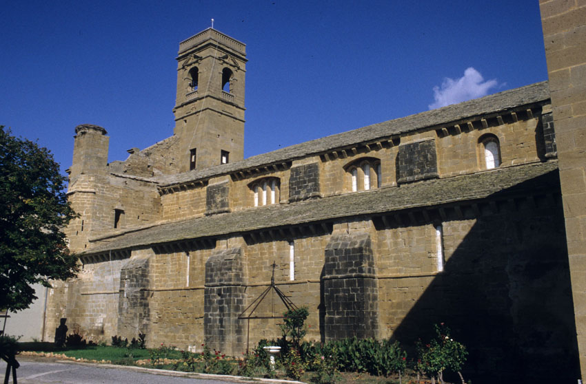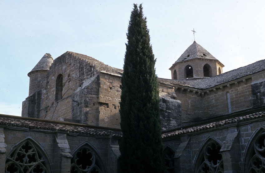 Vista de fachadas del Monasterio de la Oliva tomadas desde su claustro (Carcastillo, Navarra).