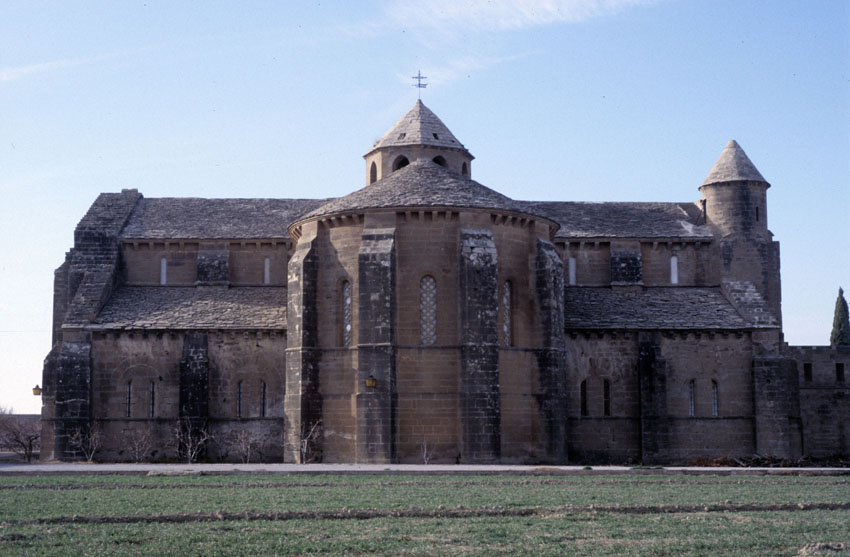 Vista de la de la iglesia del Monasterio de la Oliva desde el ábside (Carcastillo, Navarra).