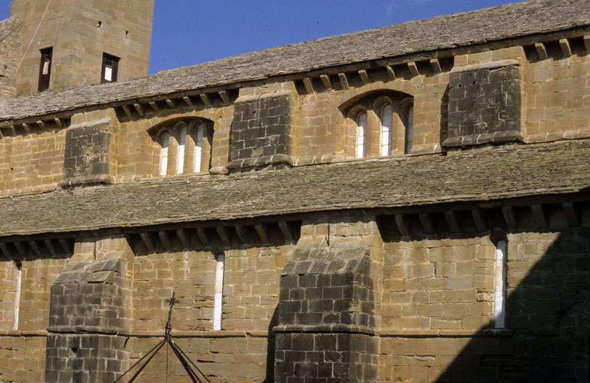 Detalle de un vano y canes de la iglesia del Monasterio de la Oliva, en Carcastillo (Navarra).