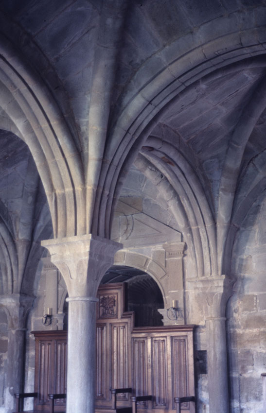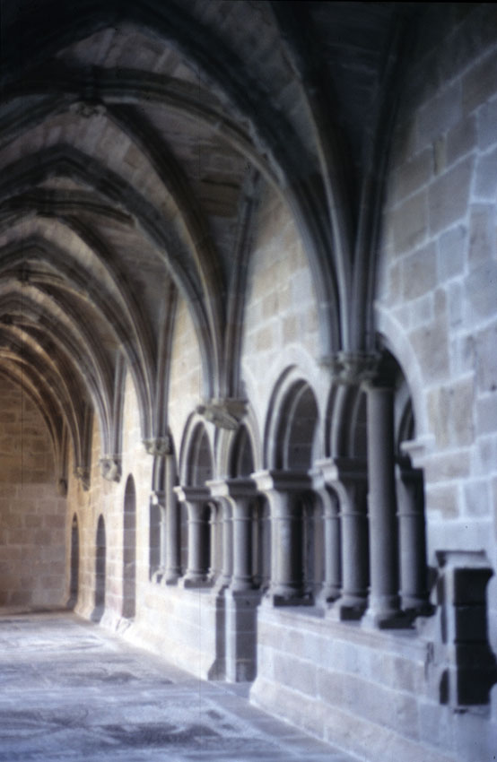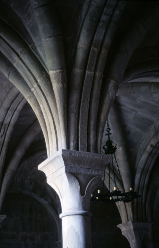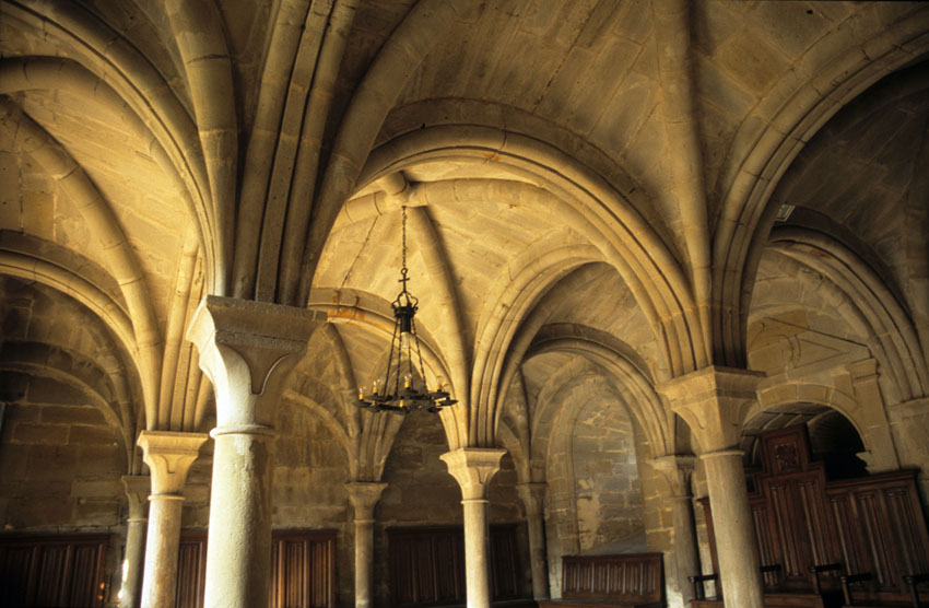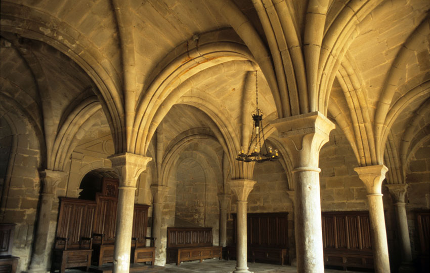 Crujía y arcos de la Sala capitular del Monasterio de la Oliva en Carcastillo (Navarra).