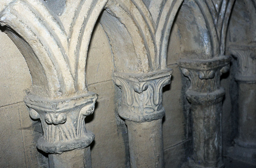 Crujía y arcos de la Sala capitular del Monasterio de la Oliva en Carcastillo (Navarra).