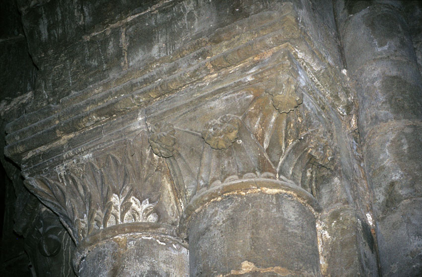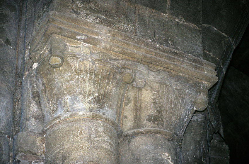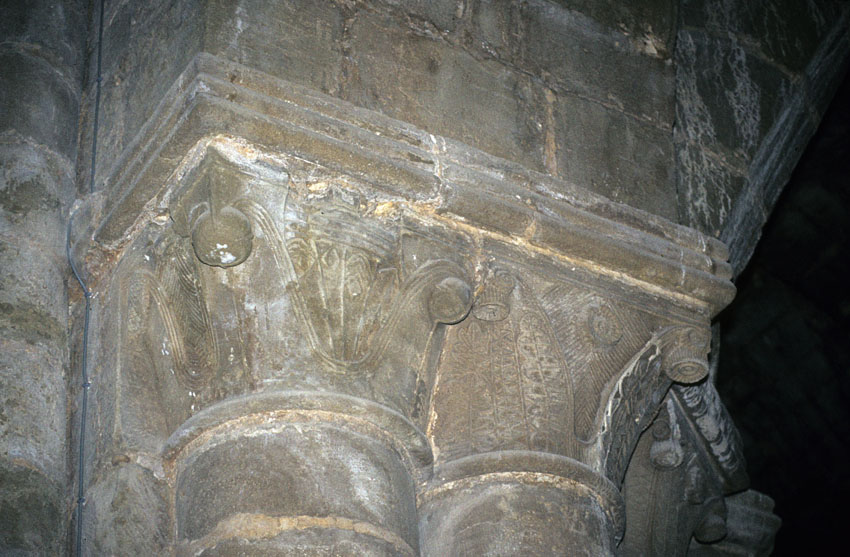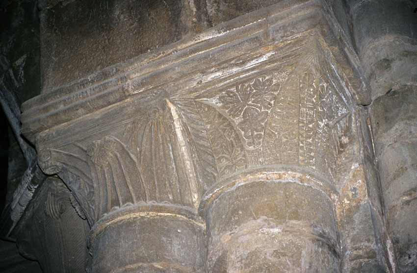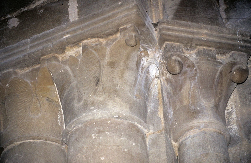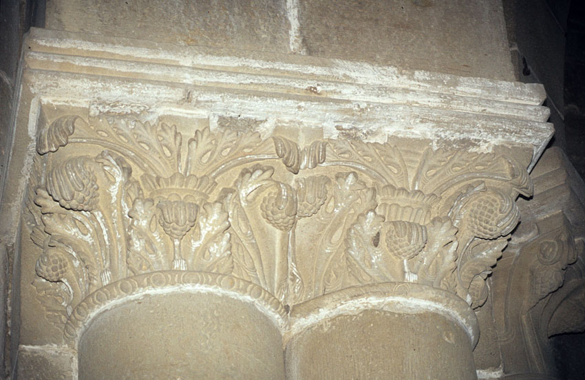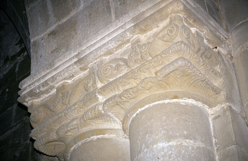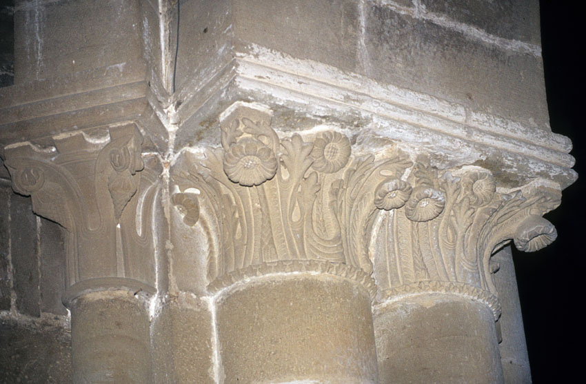 Detalle de capiteles y mocheta de la Ermita de San Zoilo de Cáseda (Navarra).
