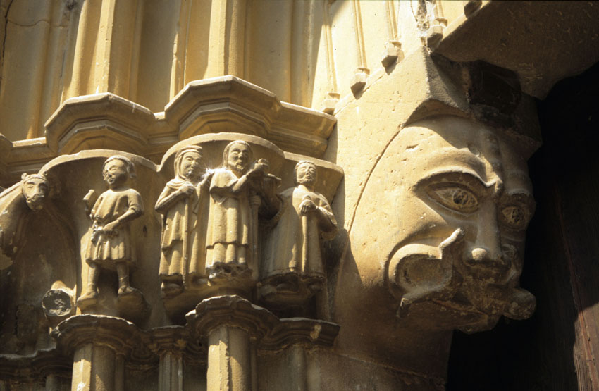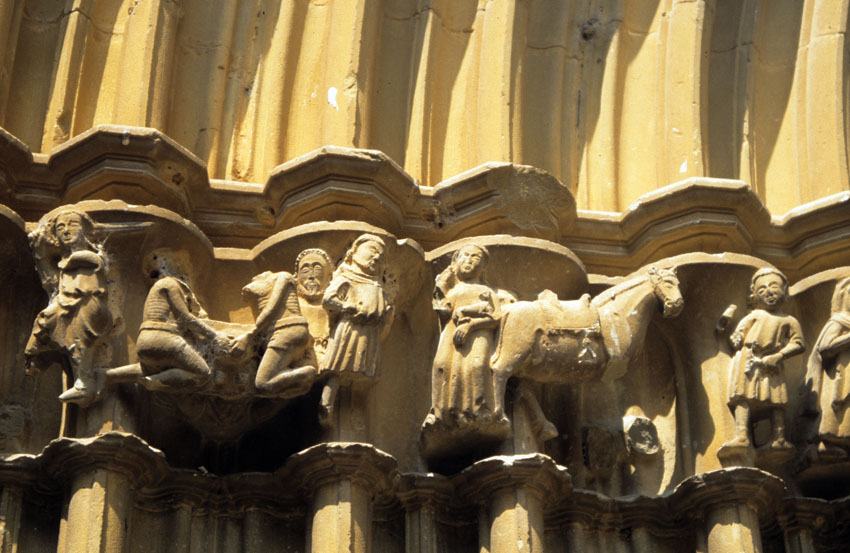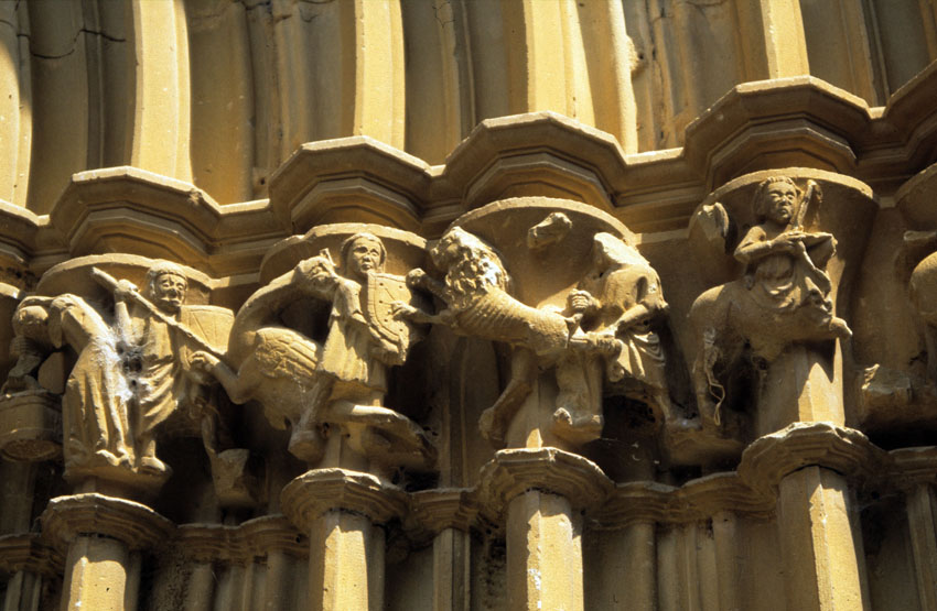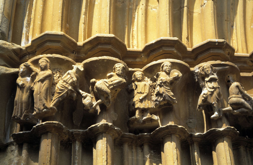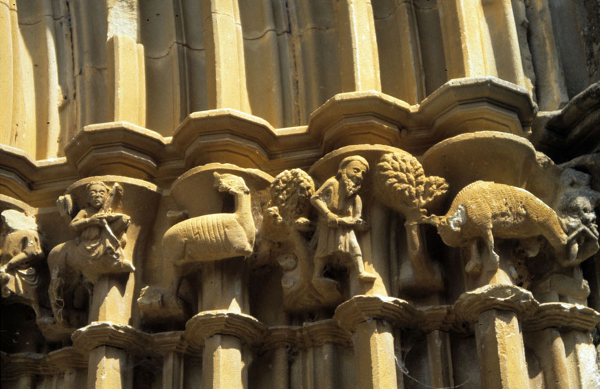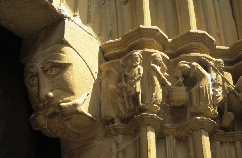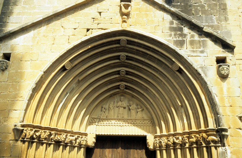 Detalle de la portada de la Ermita de San Zoilo de Cáseda (Navarra).