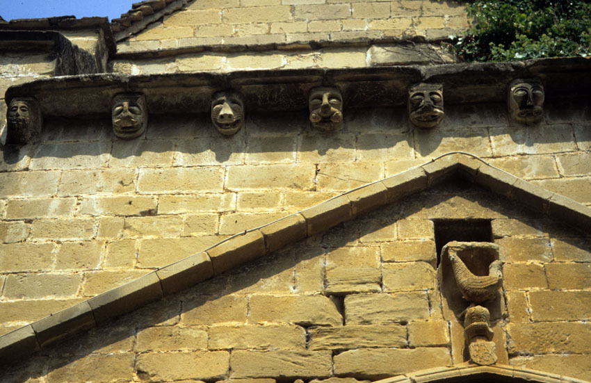 Detalle de la fachada de la Ermita de San Zoilo de Cáseda (Navarra).