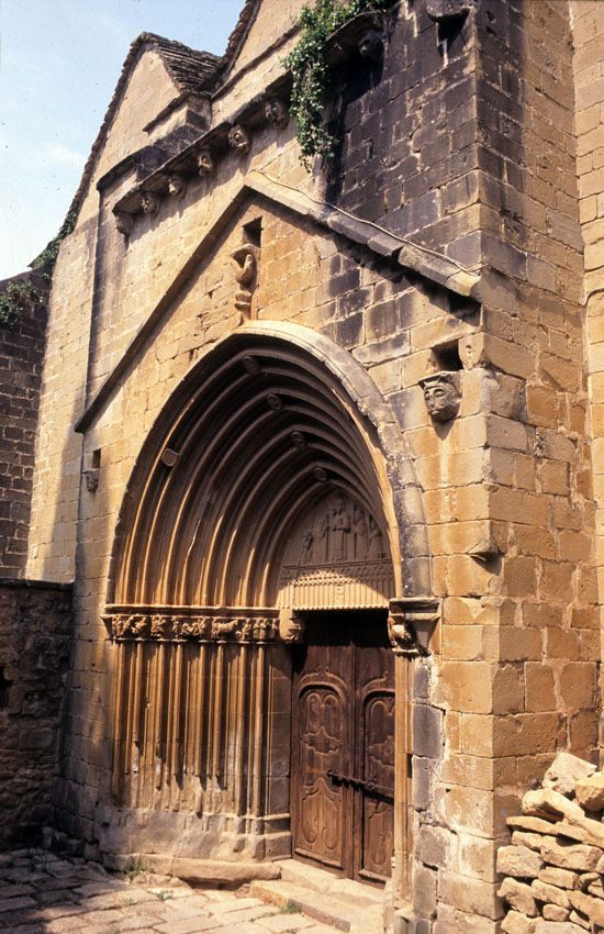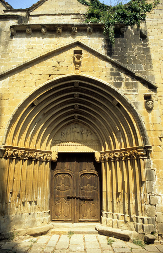 Detalle de la portada principal de la Iglesia de la Magdalena de Tudela (Navarra).