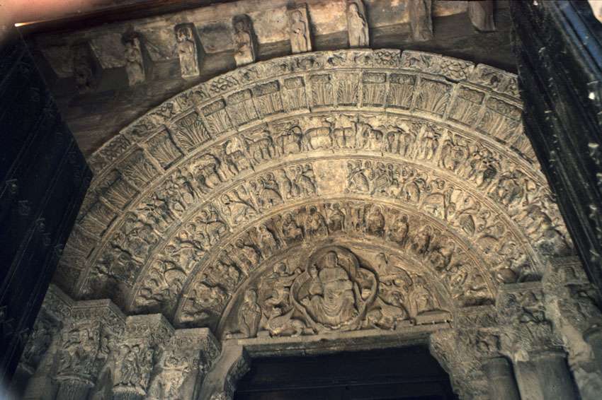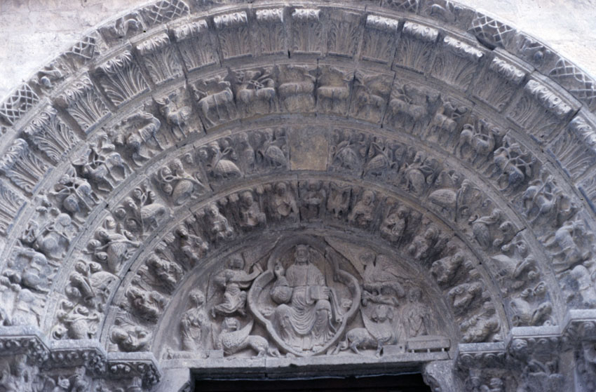 Detalle del tímpano de la Ermita de San Zoilo de Cáseda (Navarra).