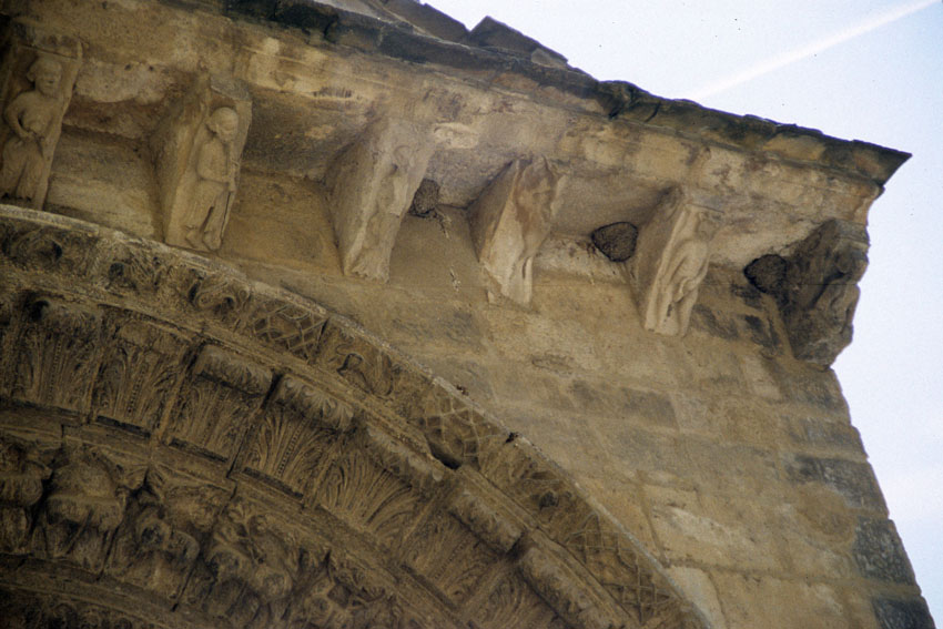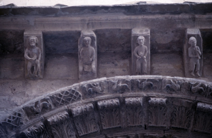 Detalle de la portada de la Ermita de San Zoilo de Cáseda (Navarra).