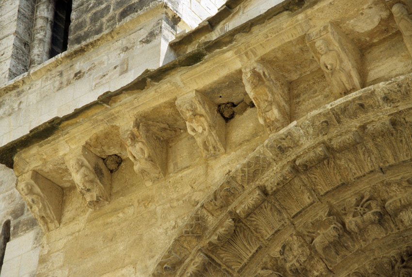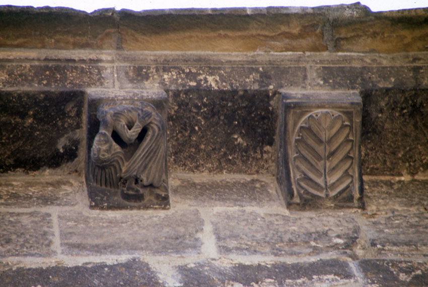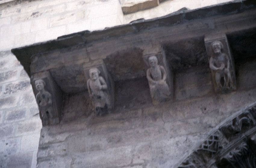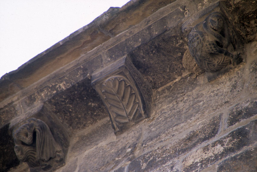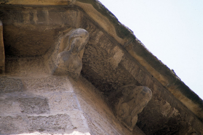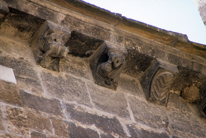 Detalle de canecillos de la Iglesia de la Magdalena de Tudela (Navarra).