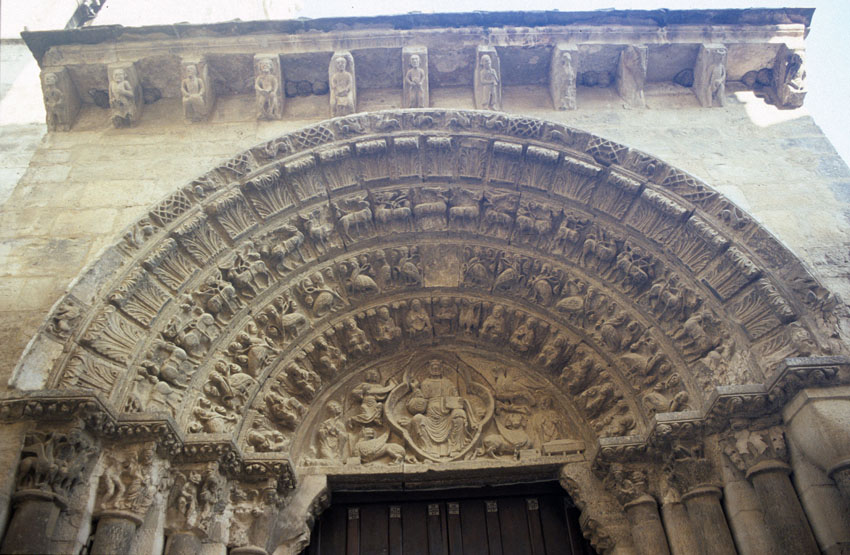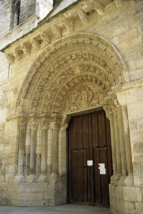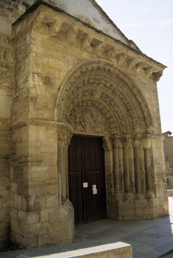 Detalle de la portada principal de la Iglesia de la Magdalena de Tudela (Navarra).
