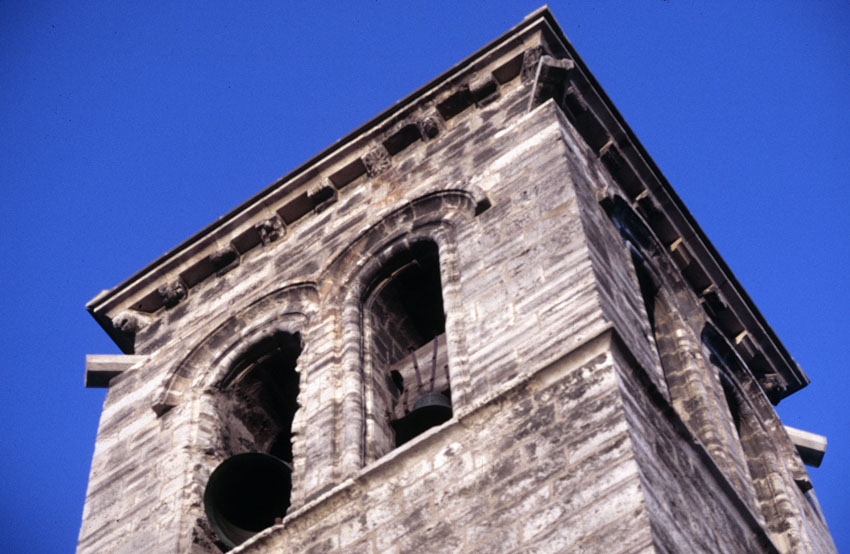 Detalle de la torre de la Iglesia de la Magdalena de Tudela (Navarra).