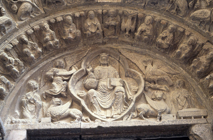 Tímpano de la portada principal de la Iglesia de la Magdalena de Tudela (Navarra).
