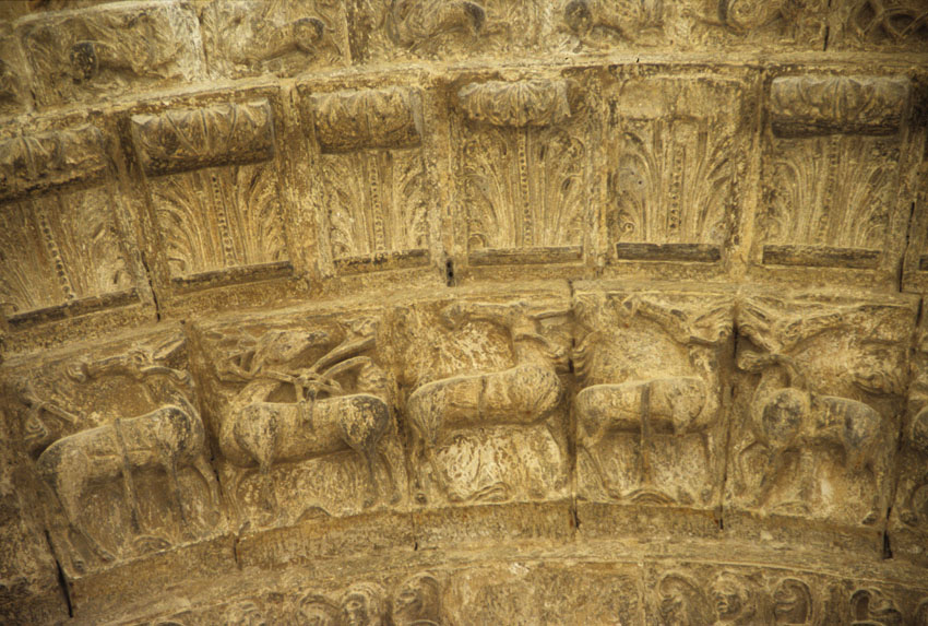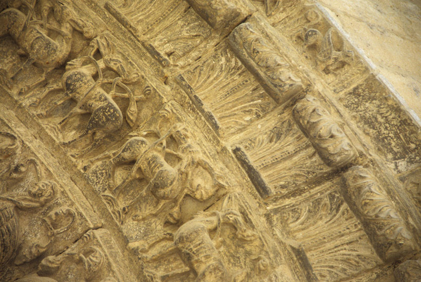 Detalle de una arquivolta de la Iglesia de la Magdalena de Tudela (Navarra).
