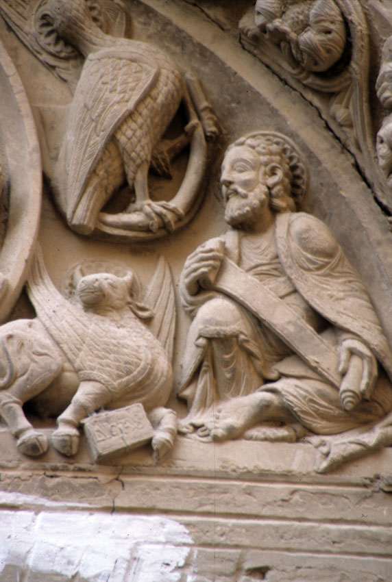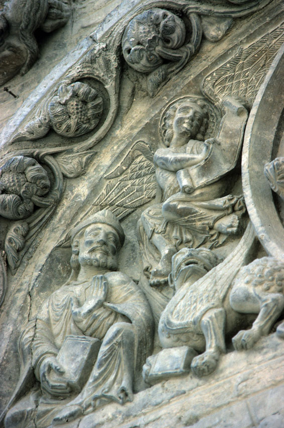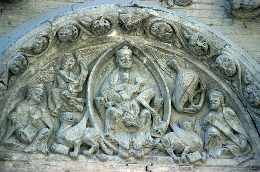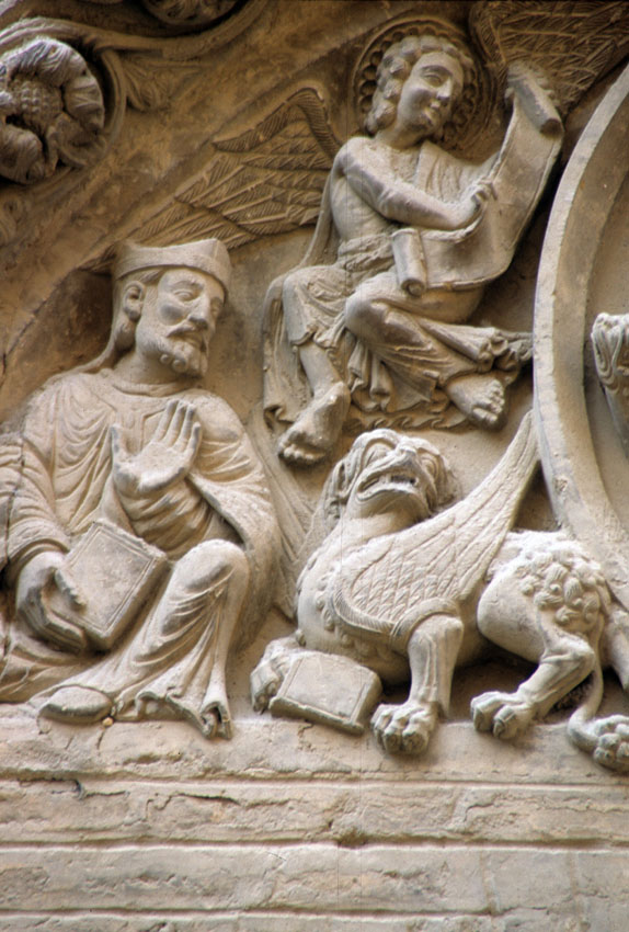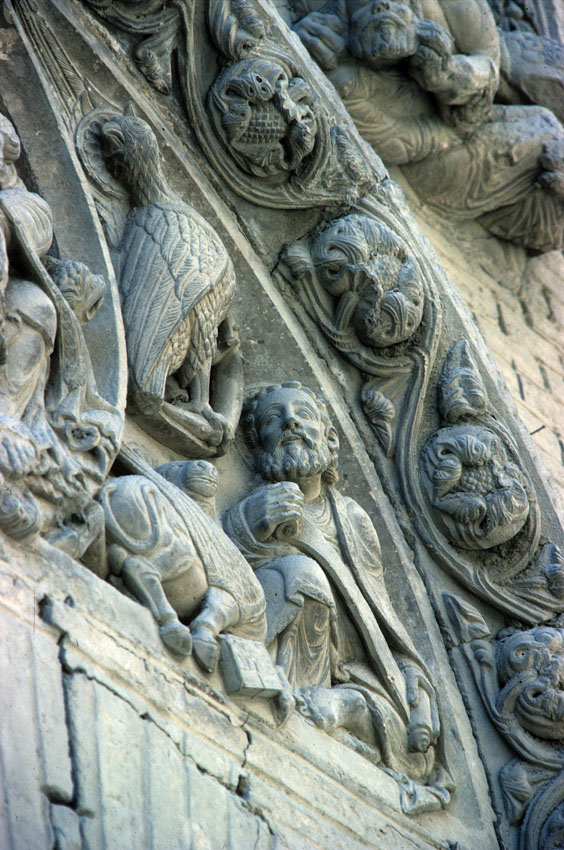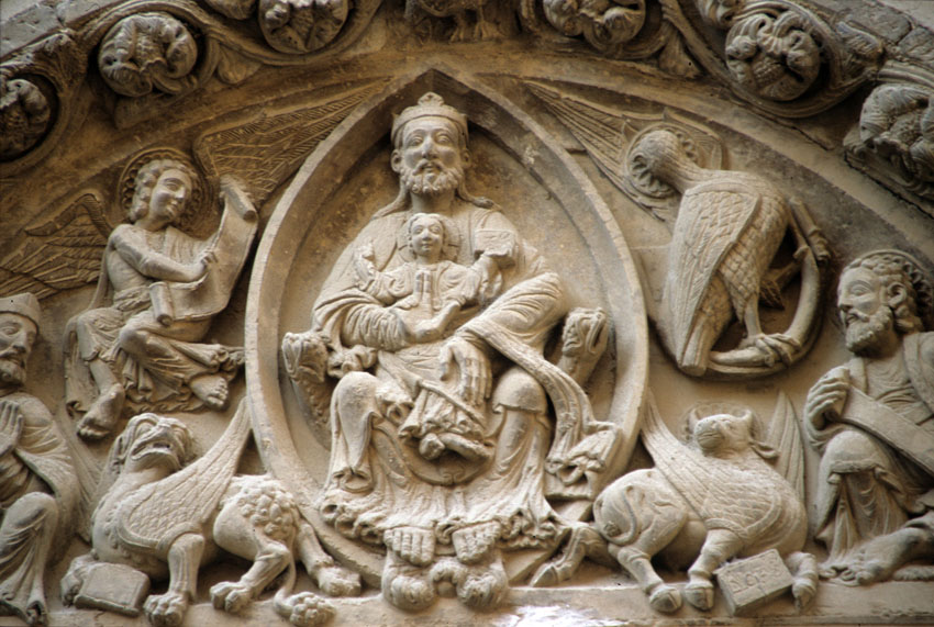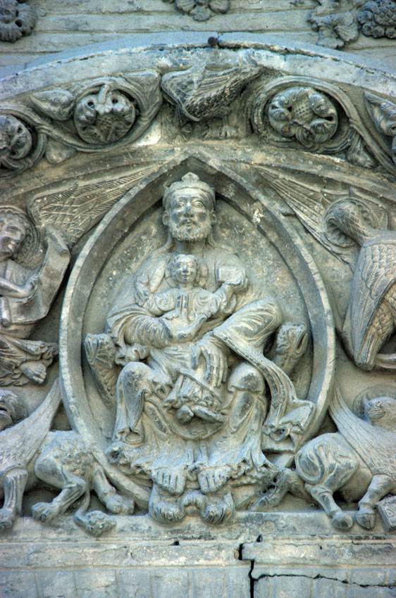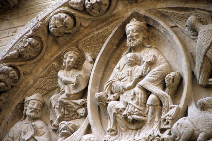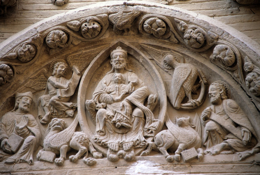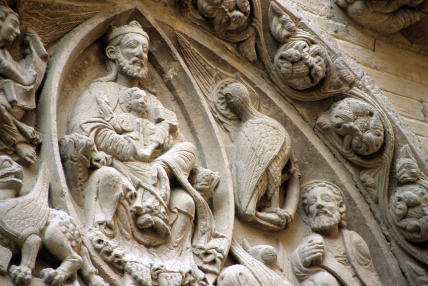 Detalle del tímpano de la Iglesia de San Nicolás de Tudela (Navarra).