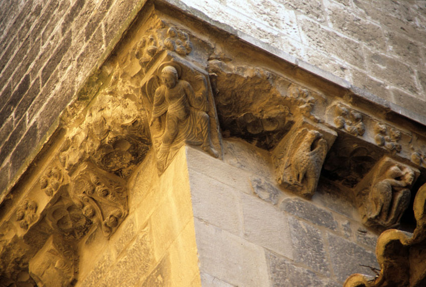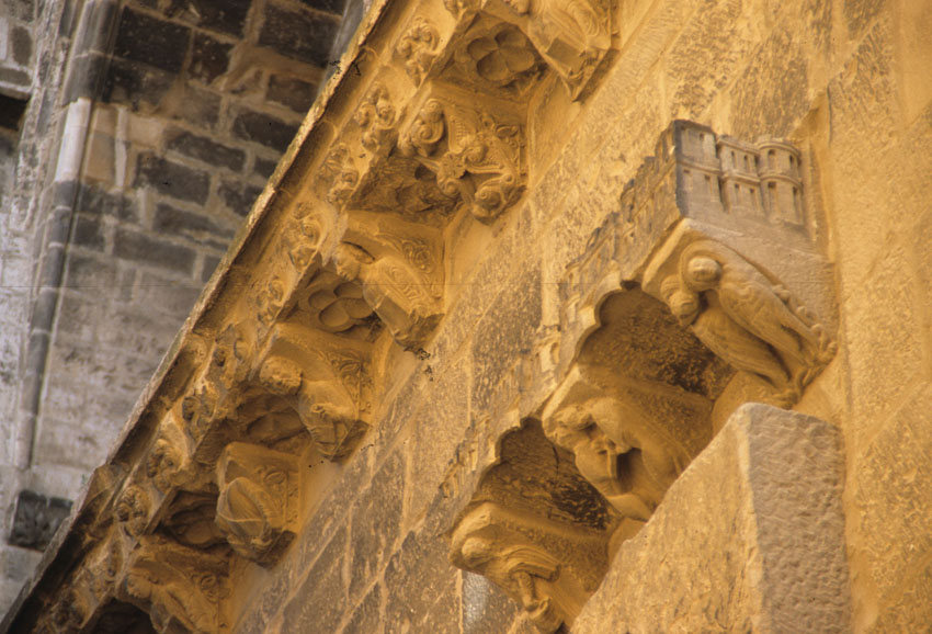 Detalle de canecillos de la Catedral de Santa María de Tudela (Navarra).