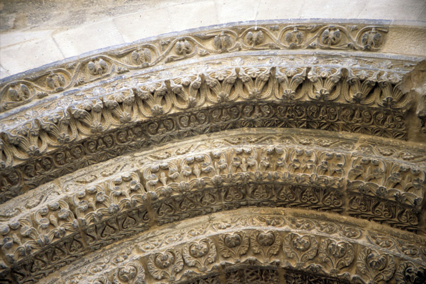 Detalle de arquivoltas de la Catedral de Santa María de Tudela (Navarra).