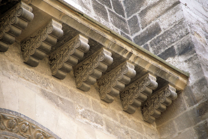 Detalle de modillones de la Catedral de Santa María de Tudela (Navarra).