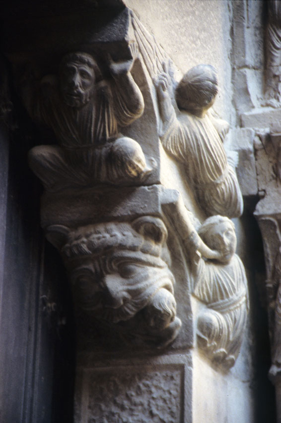 Detalle de capiteles y de una mocheta de la Catedral de Santa María de Tudela (Navarra)