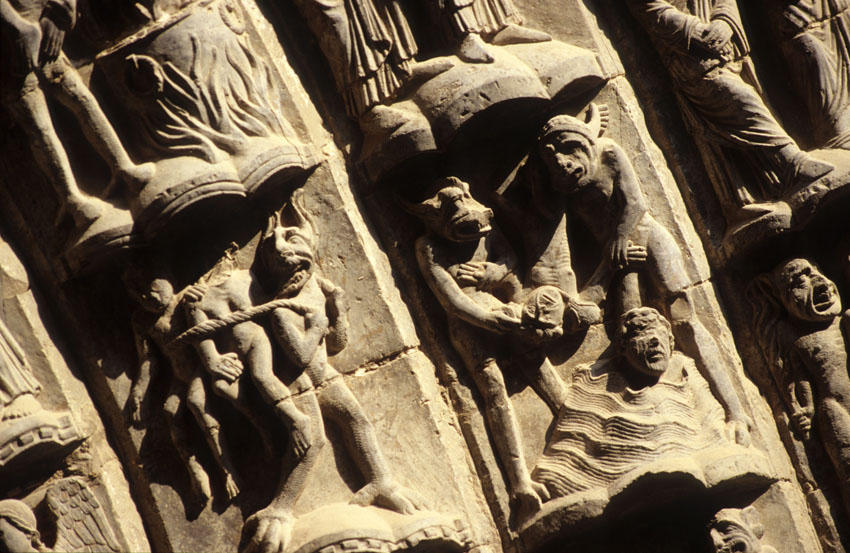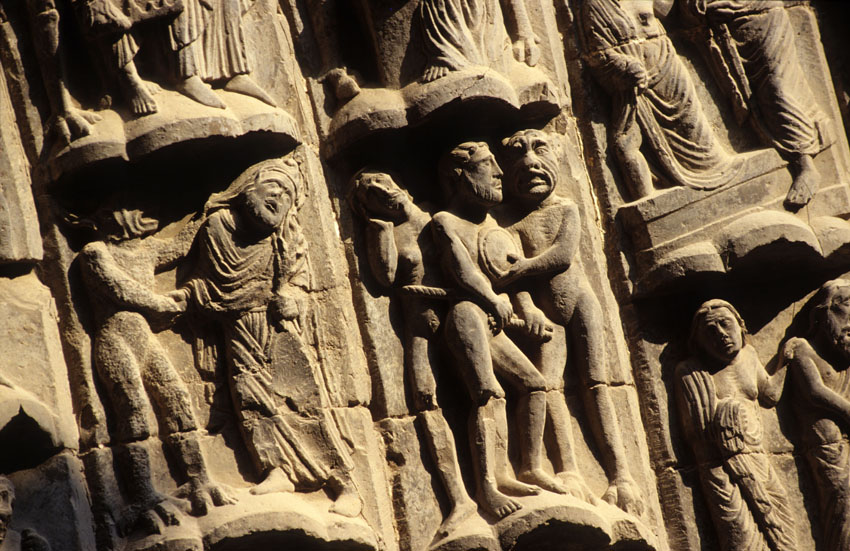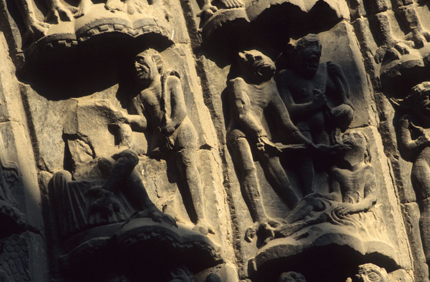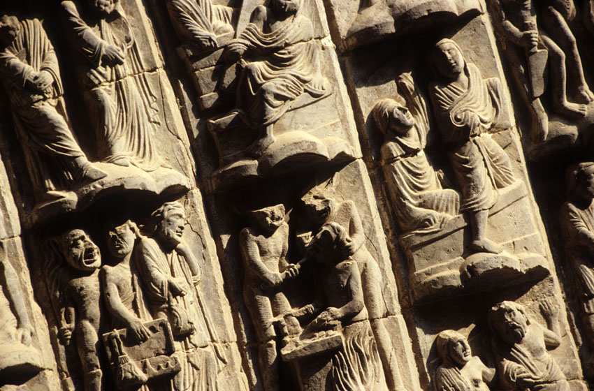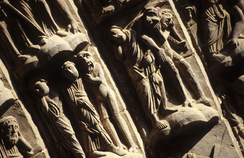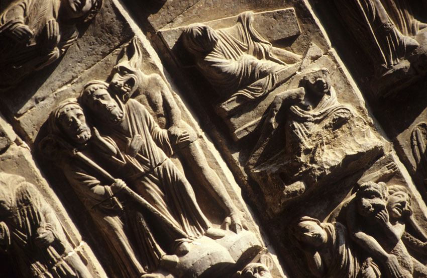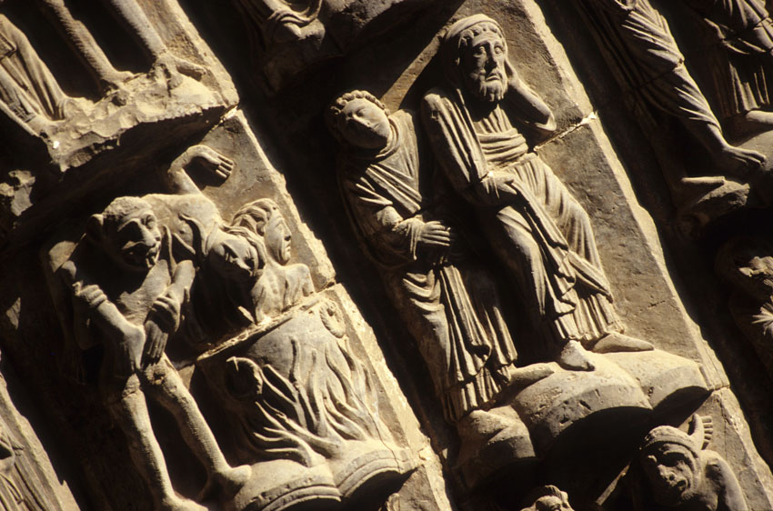 Detalle de la Portada del Juicio de la Catedral de Santa María de Tudela (Navarra)