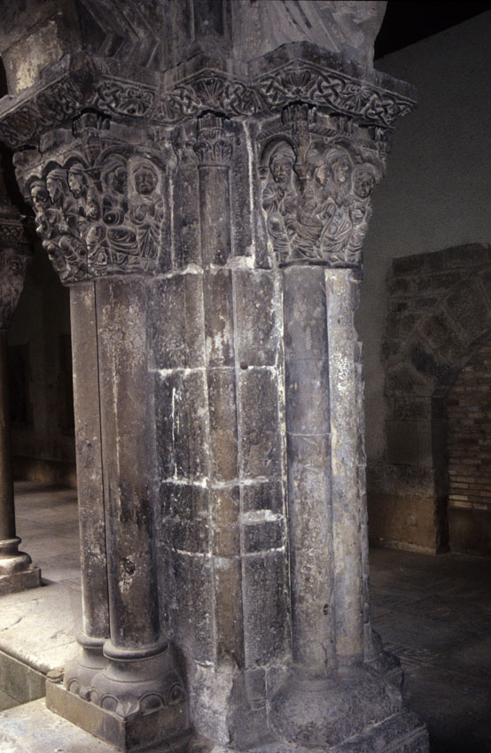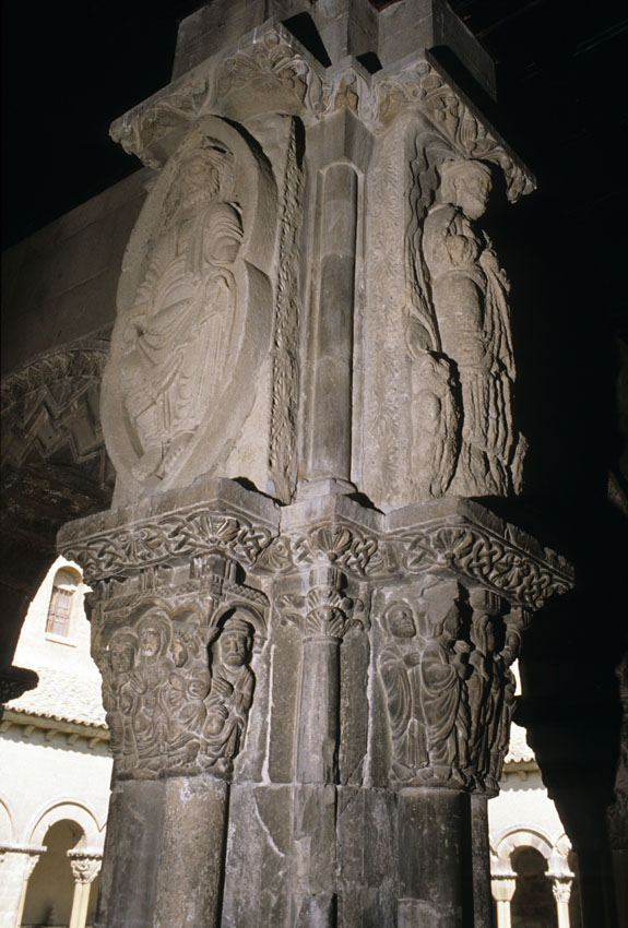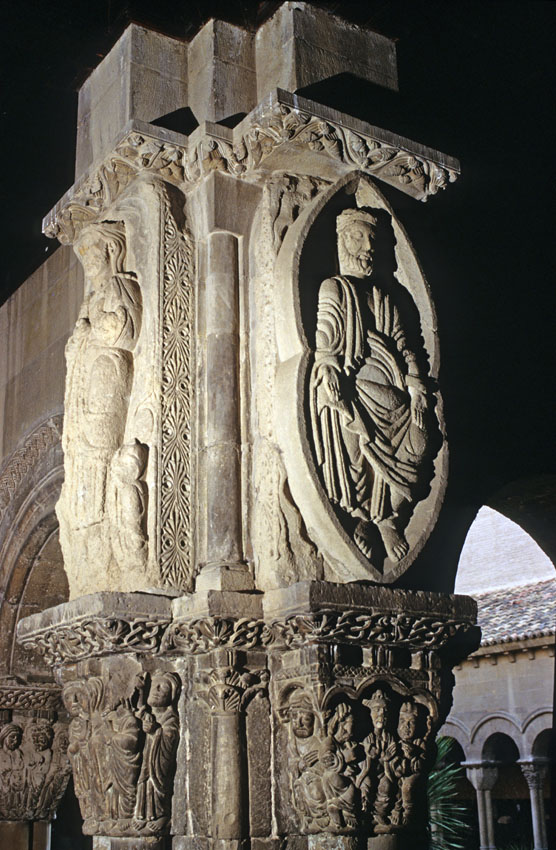 Detalle de un pilar del claustro de la Catedral de Santa María de Tudela (Navarra)