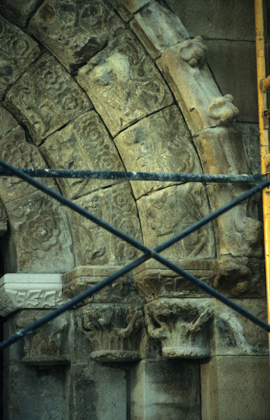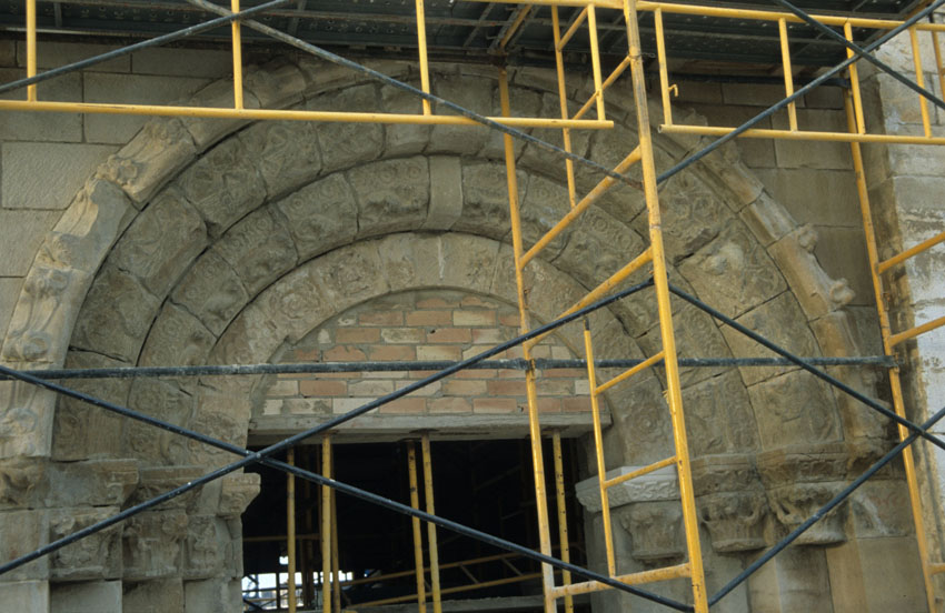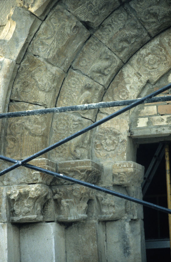 Detalle de la portada de la Iglesia de San Juan de Jerusalén de Cabanillas (Navarra)
