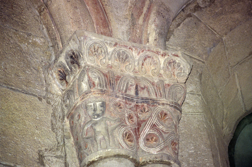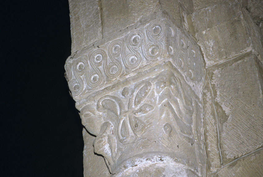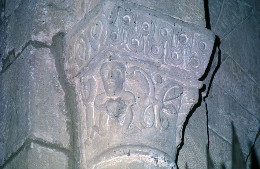 Detalle de un capitel de la Iglesia de Santa María de Ujué (Navarra)
