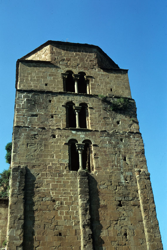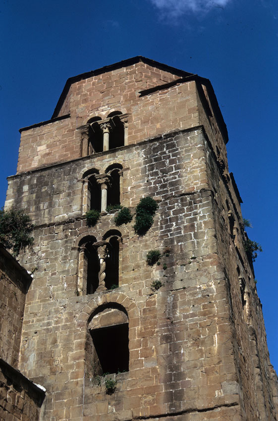 Detalle del campanario de la Iglesia de Santa María de Santa Cruz de la Serós (Huesca)