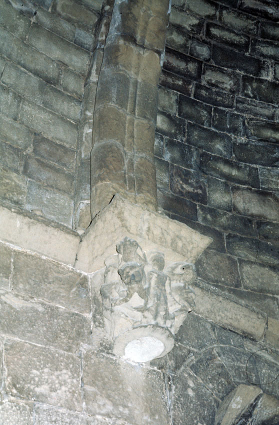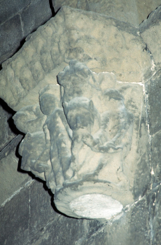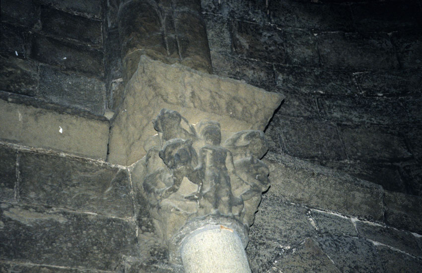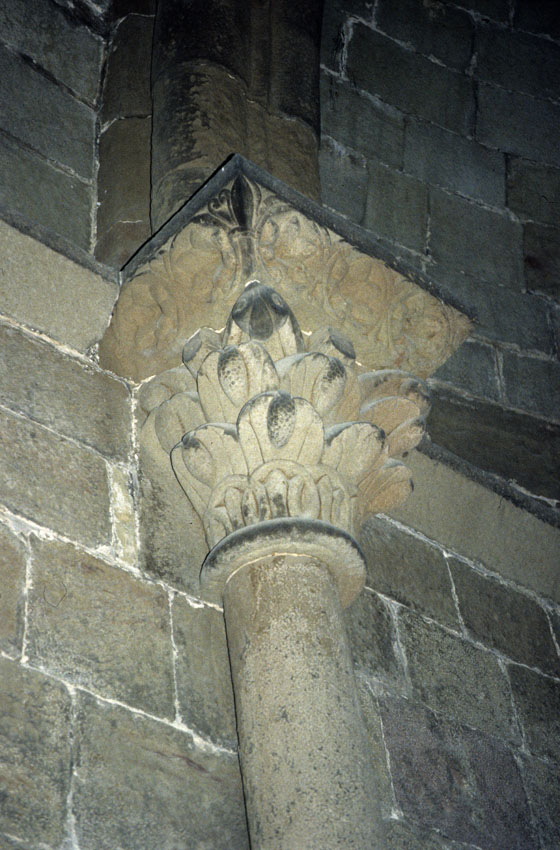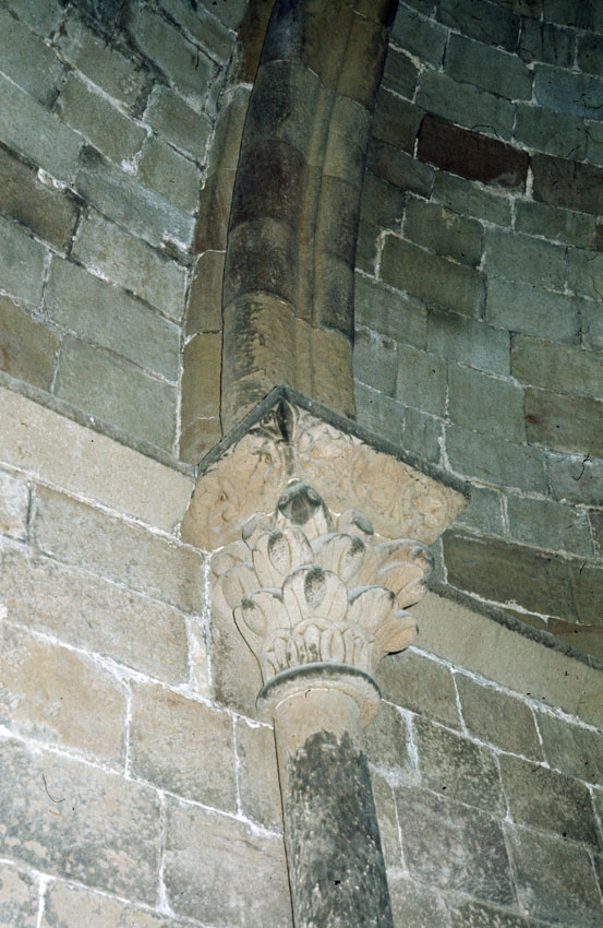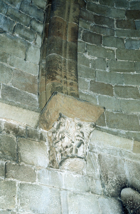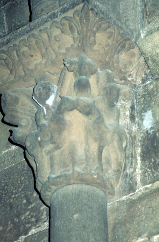Detalle de un capitel de la Iglesia de Santa María de Santa Cruz de la Serós (Huesca)