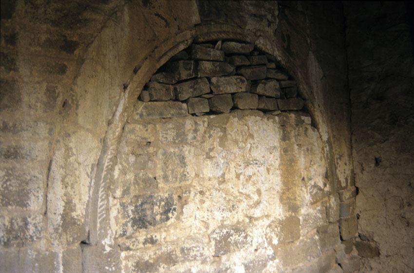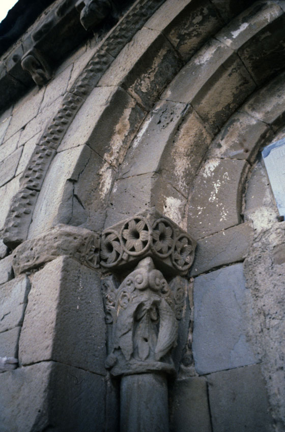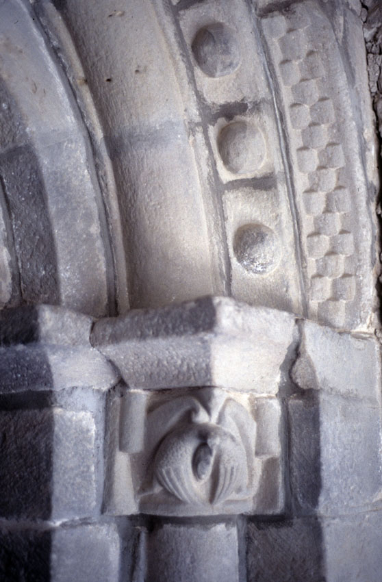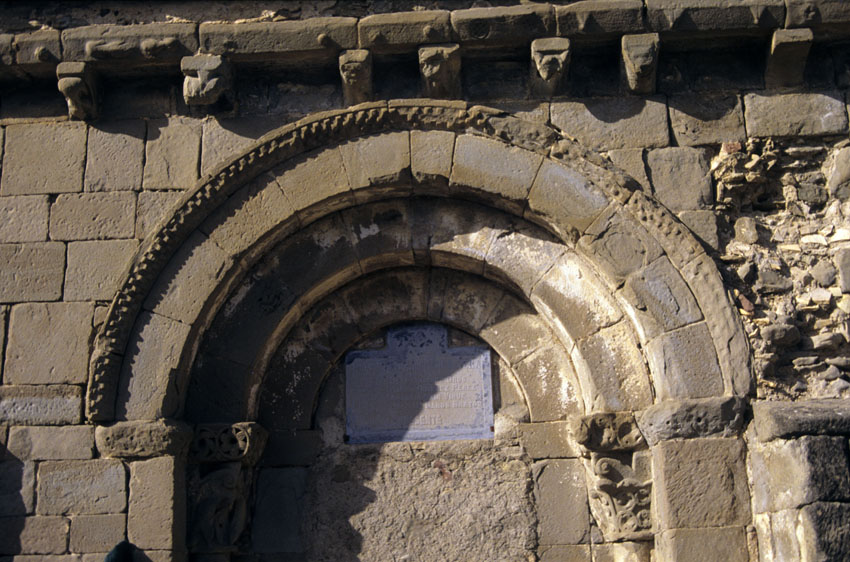 Detalle de un arco de la Iglesia de San Miguel Arcángel de Alastuey, en Bailo (Huesca)