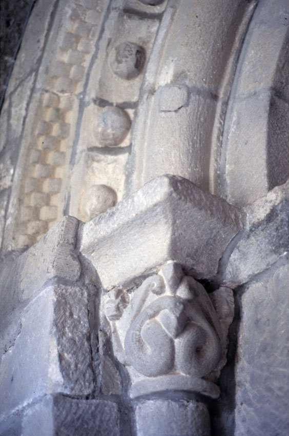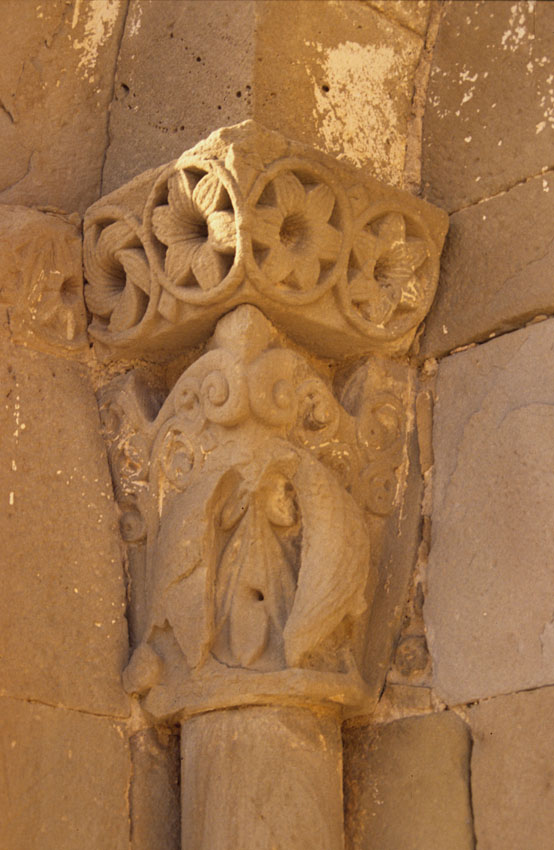 Detalle de un capitel de la Iglesia de San Pedro de Arbués, en Bailo (Huesca)