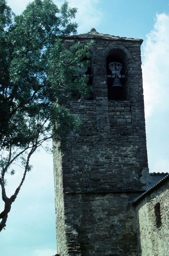 Detalle del campanario de la Iglesia de los santos Justo y Pastor de Espuéndolas, lugar de Jaca...