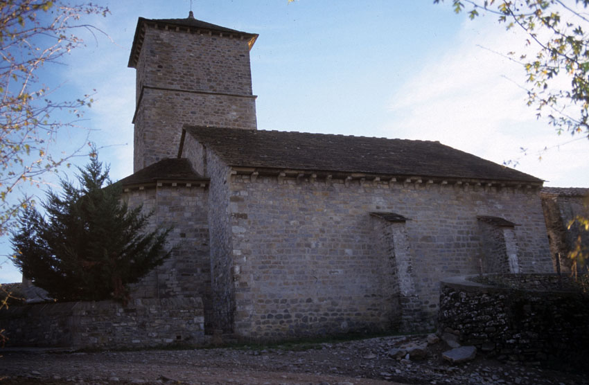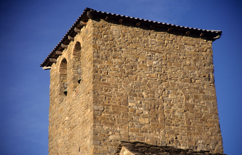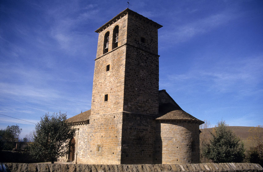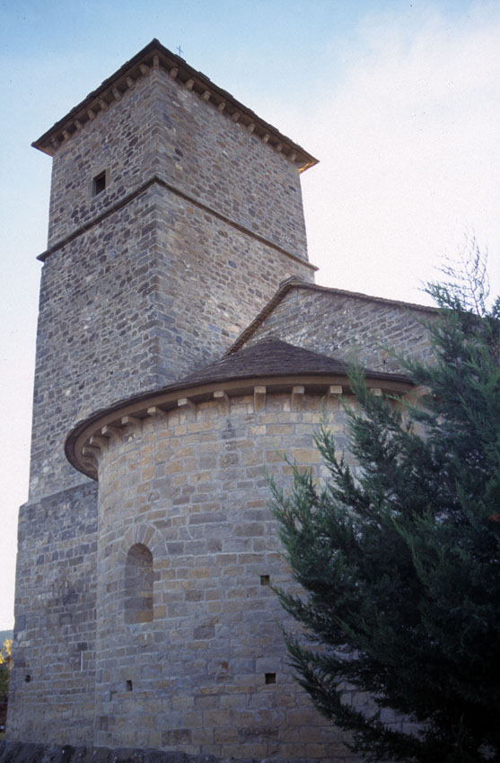 Campanario y ábside de la Iglesia de San Andrés de Abay (Huesca)
