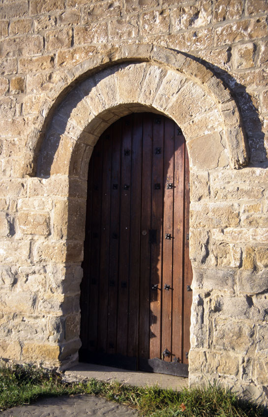 Detalle de una puerta de la Iglesia parroquial de San Andrés de Asieso (Huesca)