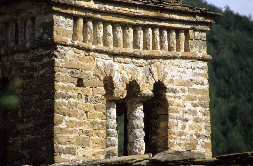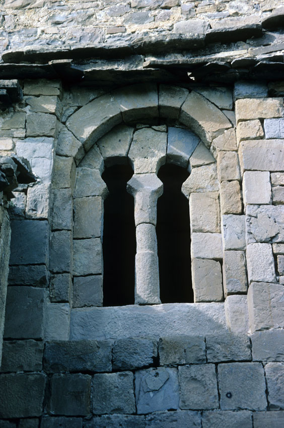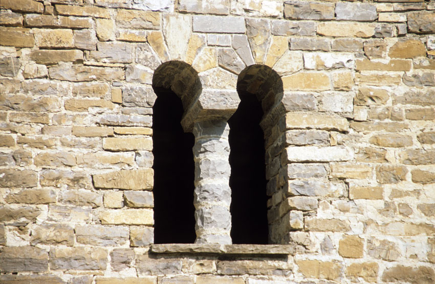 Detalle de un vano geminado de la Iglesia de Santa Eulalia de Susín (Huesca)