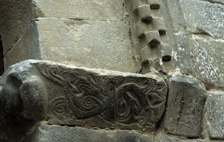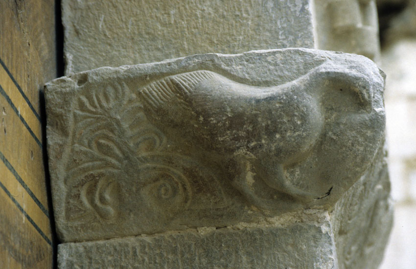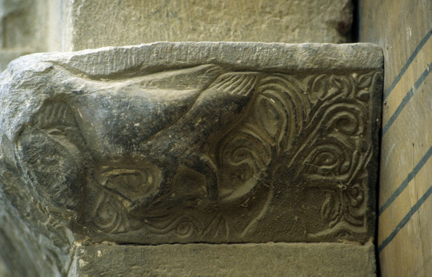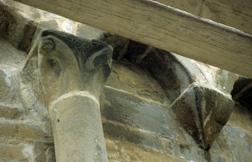Detalle de una imposta de la Iglesia de San Miguel de Orna de Gállego (Huesca)