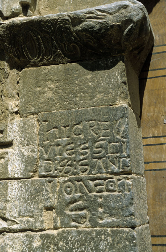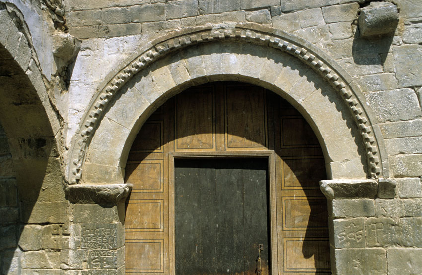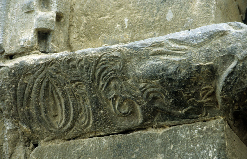 Detalle de una jamba de la Iglesia de San Miguel de Orna de Gállego (Huesca)