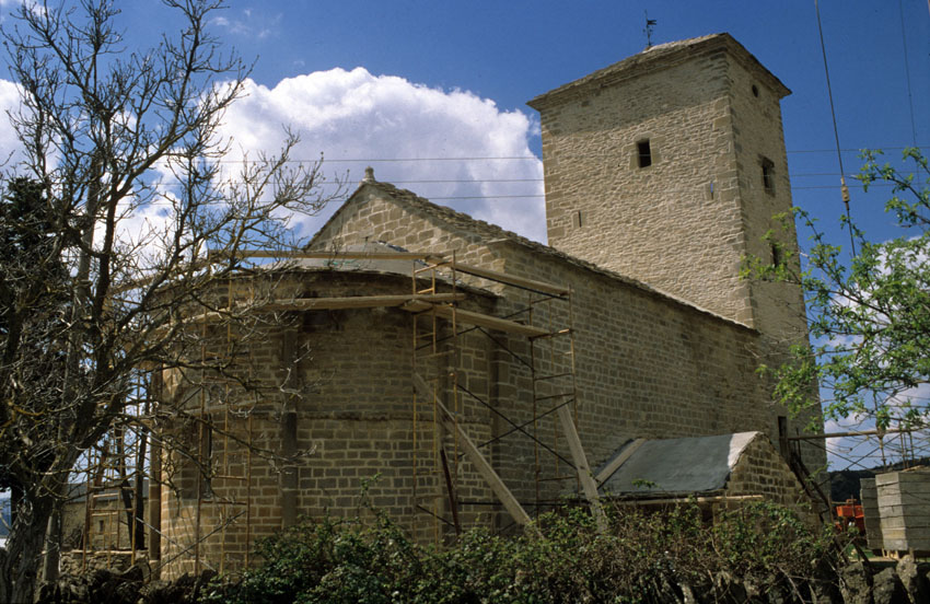 Ábside y fachada de la Iglesia de San Miguel de Orna de Gállego (Huesca)