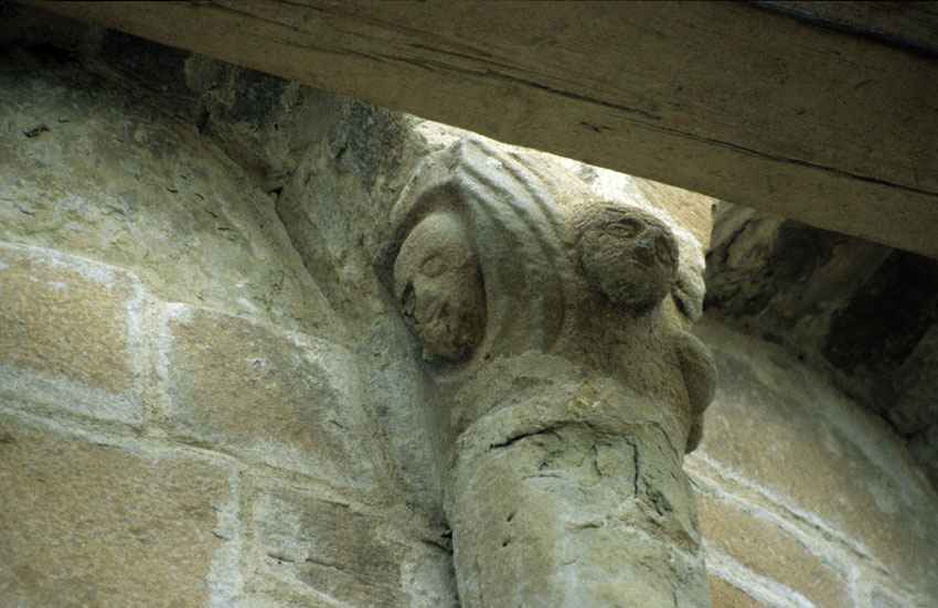 Detalle de un capitel de la Iglesia de San Miguel de Orna de Gállego (Huesca)